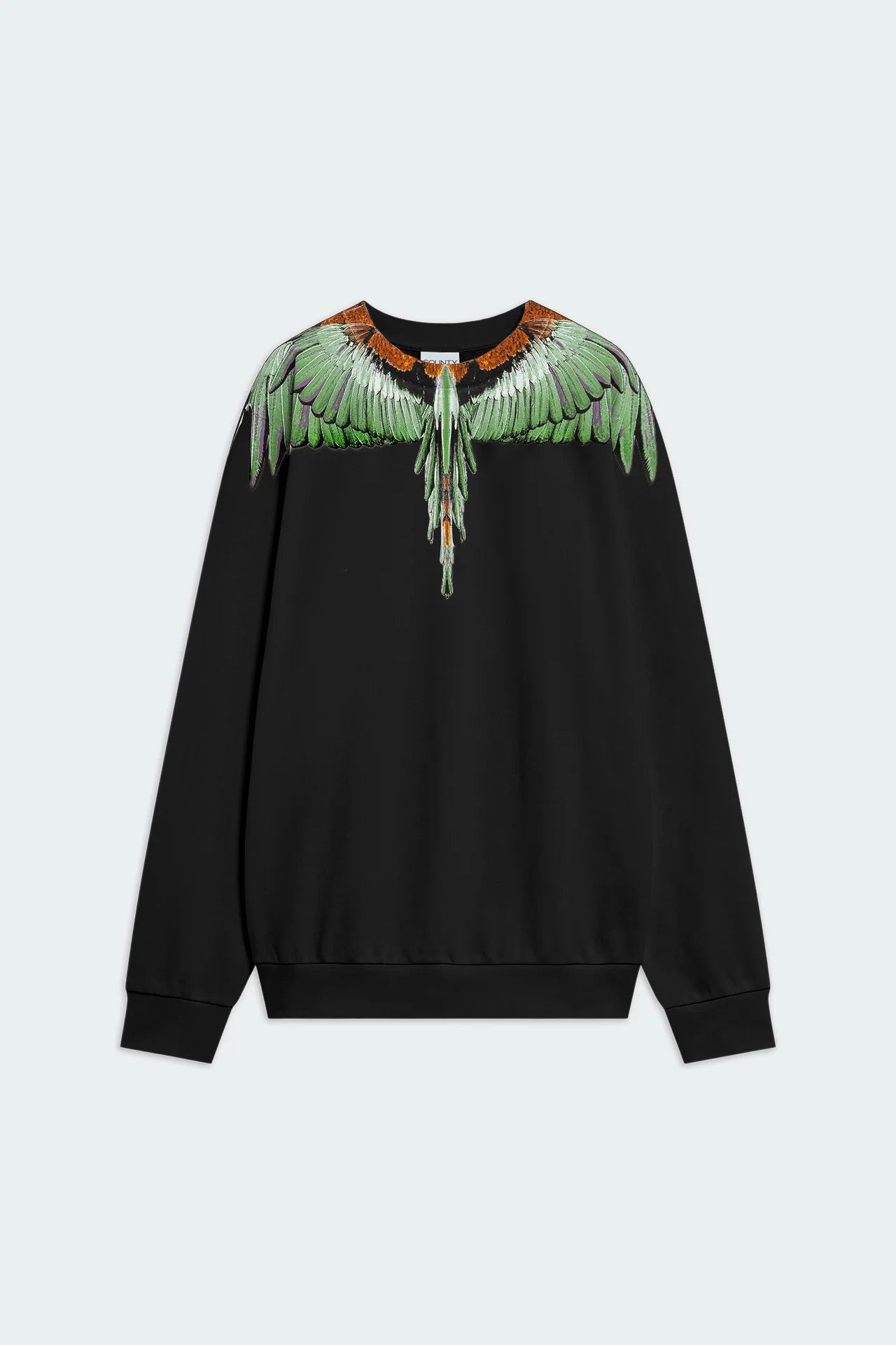 Felpa in 100% cotone con fit morbido. Caratterizzata dall’iconica stampa “ali COUNTY OF MILAN” a contrasto sul fronte e sul retro. Girocollo, polsini e fondo a costine. Etichetta 3D applicata sul fianco.